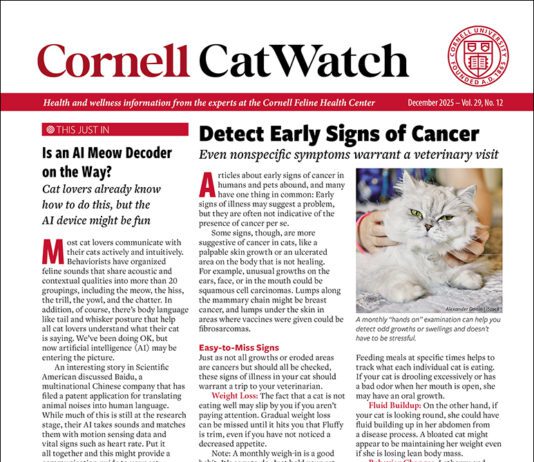 Q: I adopted my now 16-year-old domestic shorthaired cat 14 years ago. She is healthy, and she is strictly an indoor cat. Recently, she...