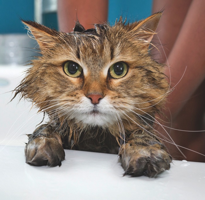 Many cats never need a bath. They’re amazing groomers. But, unfortunately, even indoor cats might get behind the furnace and end up dirty. It’s better for the cat to get a bath than to have him lick and consume that dust and dirt. A bath may be needed to: