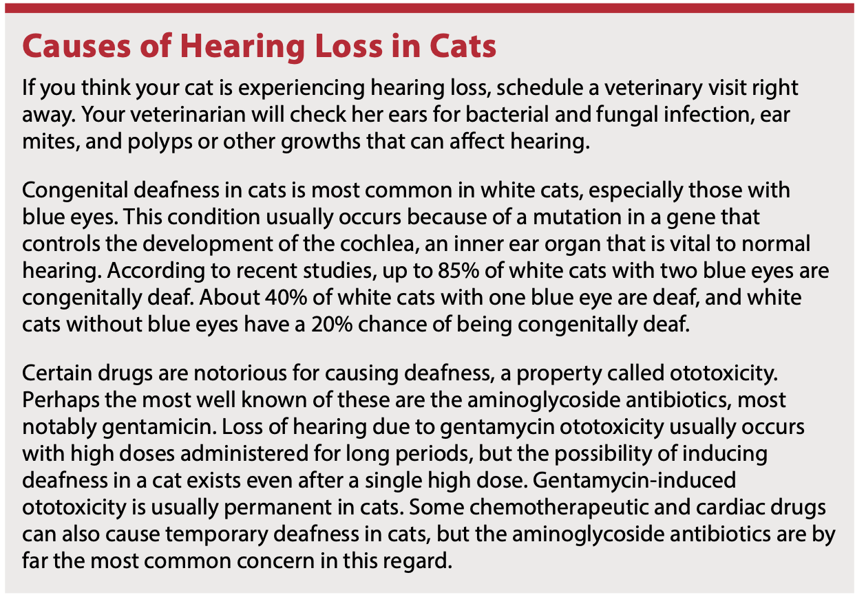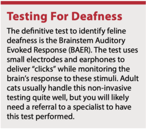 Recognition of deafness in cats is the first step toward assuring that cats with hearing impairment receive the care they need to live their best lives.